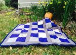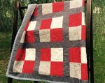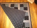 I also took some time and experimented with a new design – the “split rail,” aka the “rail fence.” I really liked it and had fun using it more. I also experimented using both cotton backing and flannel. After all, if the idea was to stay warm during games, then flannel was the way to go. In addition to my newfound appreciation for flannel, I also found that I simply LOVE crepe back satin. I used it in a couple of quilts and like the texture and sheen of it.
