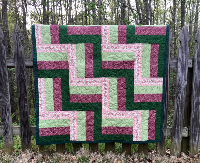 Another one I made using the split rail (aka rail fence) design, and it’s garden themed. I also used the cute pink fabric as part of the backing as well.