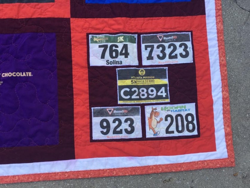 Previous Image Next Image 89F878D9-3048-4853-BA6E-BCF174B4C6C0 I scanned running bibs and incorporated them into the bottom two corners of the quilt. Share this:Share on Tumblr Share on Reddit (Opens in new window) Reddit TweetLike Loading...