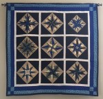 I made this mariner’s compass quilt as a surprise for my husband at Christmas. I used his favorite colors of green and black, accented with white and gold.