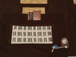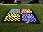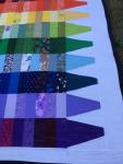An in-progress picture of a hockey quilt. Look carefully and you can see I incorporated his socks!