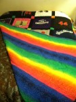 A runner lap quilt. It has the oldest shirt I’ve ever cut – from 1979.