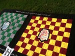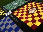 A Harry Potter quilt complete with the four houses, their crests, and a long quote.