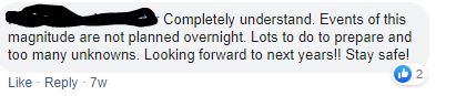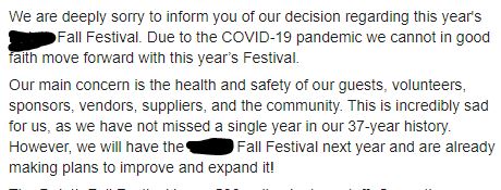 So as the announcements come in, please take a moment to thank your local event organizers for their work. They’re pretty heartbroken right now, too. They’re trying to look out for everyone, and people are going to be grumpy either way. If you’re really upset, please wear a mask and social distance to help ensure we can pick up where we left off as soon as may be.