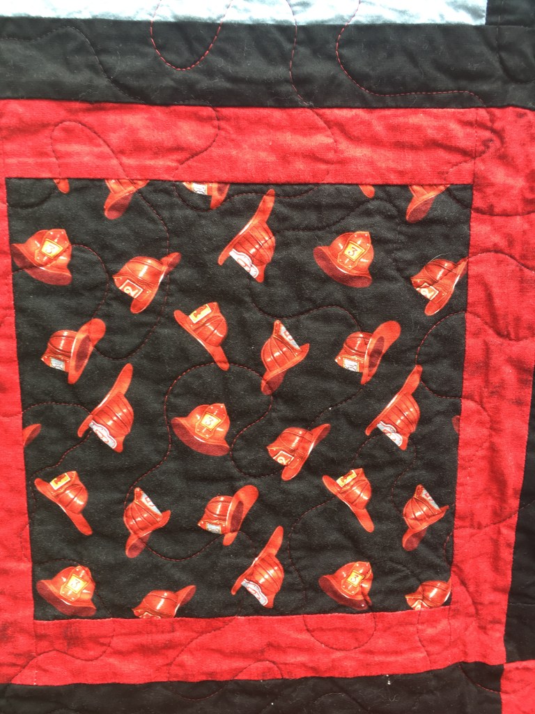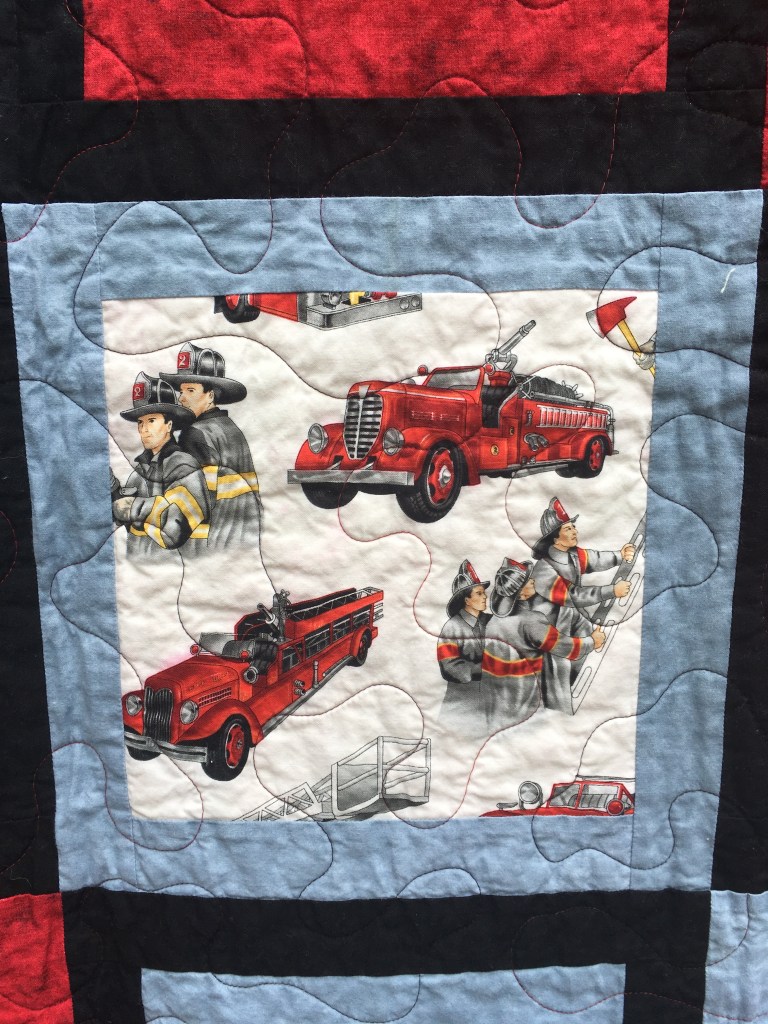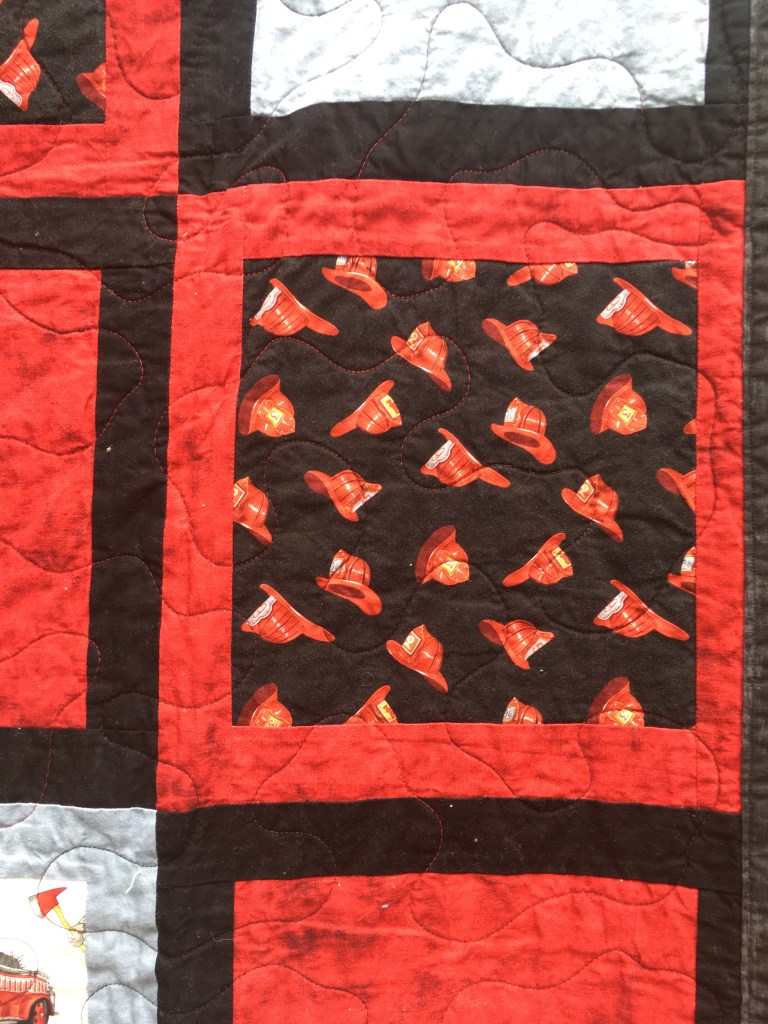 These four quilts are rounding out the kids’ quilts series. The firefighter quilts come in two sizes. One is 4′ x 5′ and the other is 4′ x 4′. I always thought they would make a great set for an older sibling and a new baby. They feature firefighters and fire engines that have a sort of vintage look. Again, I rather like the non-cartoon look, especially in quilts for younger kids because I feel like they’ll outgrow them slower. Of course, these would also be good quilts for…you know…actual fire fighters. I tried hard to make these fun without being overly childish.