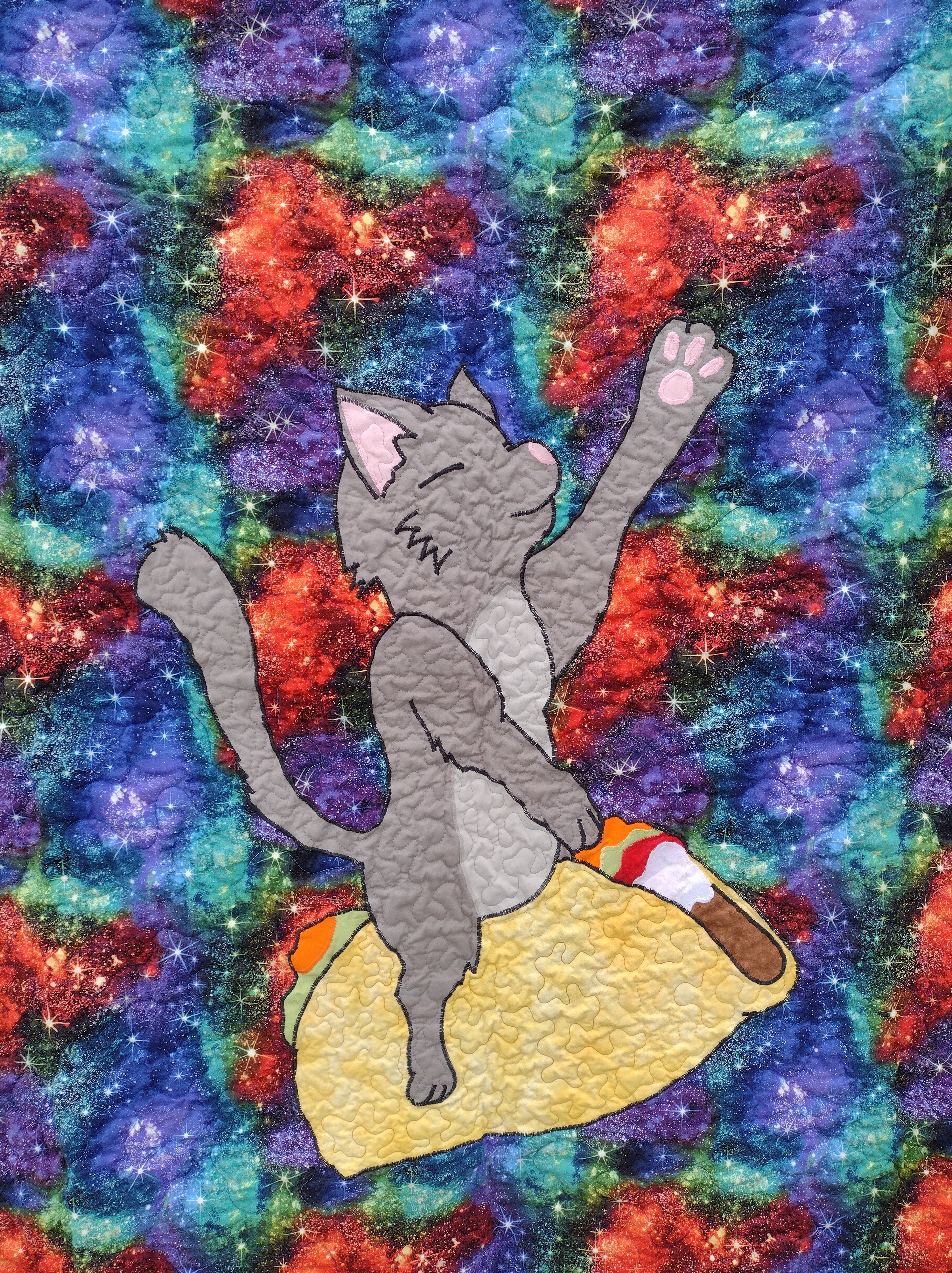 Did you know that Tacocat spelled backwards is still Tacocat? My niece does, and she loves it. So much so that, when I asked her what kind of quilt she wanted, she asked for a tacocat quilt. My daughter had a tacocat shirt, so I based the concept off her shirt.