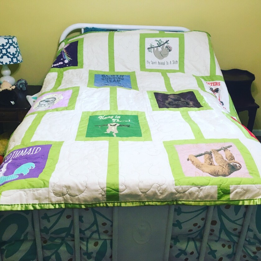 She sent me follow up pictures of the quilts as they were gifted to her siblings and one of herself underneath her own quilt.  Overall, it was a gratifying commission, and I’m thankful to have helped give a wonderful family some degree of comfort.  Love you, Abby!