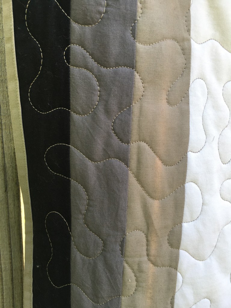 I haven’t been taking commissions, but it’s been nice to work on some projects I’ve had on hold while doing grad school stuff. I have been sitting on this Zion National Park quilt panel for a while now. There’s an entire line of them, actually, and I am in love! I haven’t ordered any specific parks, but I was able to find this panel and another Mt. Rainer one at a local fabric store that specializes in remnants. It’s a fun sort of treasure hunt, and there are always a few specific fabric lines I’m on the lookout for when I go. The National Park line is one of them. I was also able to finally give the “flying geese” pattern a try. It was pretty good, actually! The back of the quilt is brown.