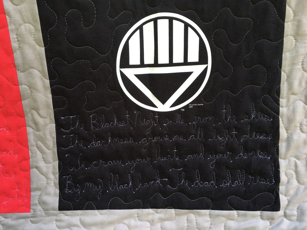 Well, I’ve done the grad school thing, gotten the expensive piece of paper at the end. Learned a lot along the way. I took June to just sit and enjoy being in charge of my own time. But I have gotten back into the groove and am ready to open back up to t-shirt quilt commissions.