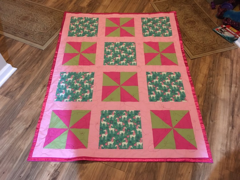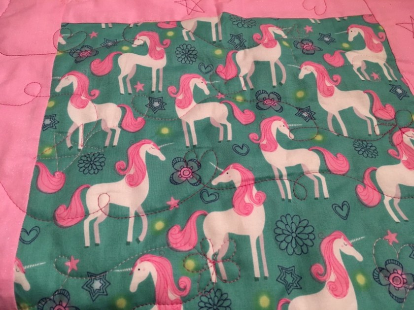 I finished the sloth t-shirt quilt, and it was so fun! Originally it was supposed to be a lap sized quilt, but my friend said something that’s music to my ears. She said, “I trust you. You have complete artistic freedom.” Most of the time when folks tell me this, they get way more than what they paid for. There’s something irresistible about having a clean slate for creativity!